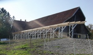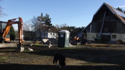 Endlich hat der Bau unseres Laufhofes und des Melkstandes begonnen. Aber der Schnee hat uns eiskalt erwischt und alles steht still und friert..... |
